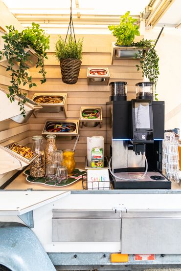 Unser einzigartiger Food-Anhänger ist für die professionelle und exquisite Verpflegung perfekt ausgestattet. Das technisch erstklassige Equipment umfasst ein hochwertige Kaffeemaschine, einen großen Kühlschrank, Kochplatten, Mikrowelle, Backofen und fließendes Wasser.